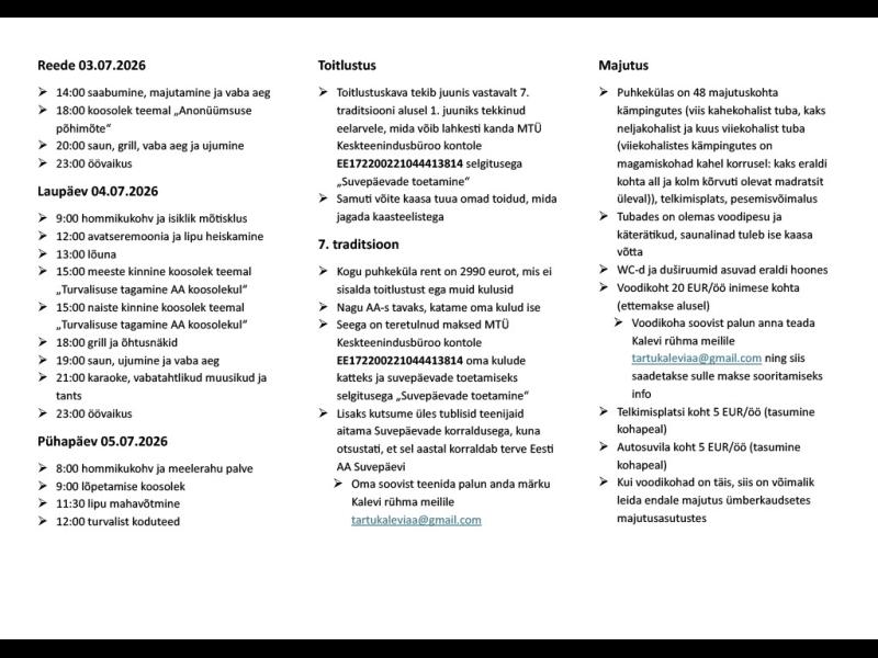 AA suvepäevad toimuvad 3.- 5. juulil Venevere Puhkekülas.